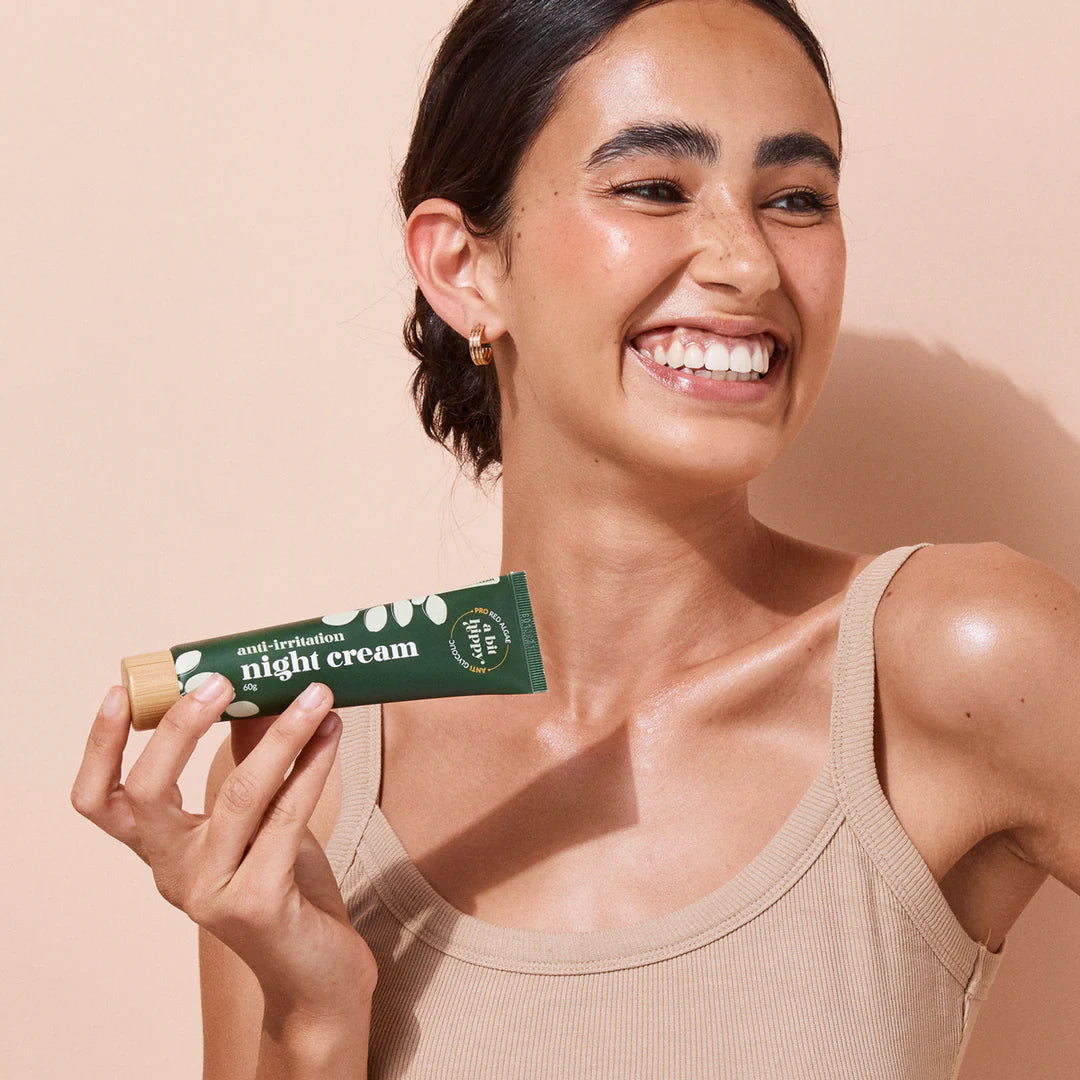 Our anti-ageing Night Cream for sensitive skin is the skincare version of just that. Simply massage the natural moisturiser into your skin, have a good night's rest and wake up with hydrated, plump and velvety soft skin! (Thanks to our favourite ingredients, Lactic Acid, Hyaluronic Acid and Red Algae to name a few...)