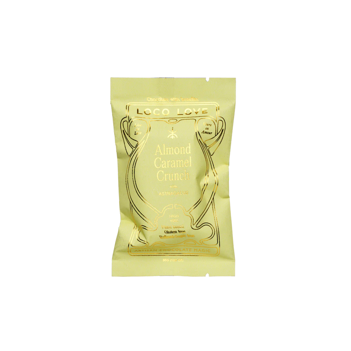 Relish in the ultimate umami experience with the salty-sweet, chewy-crunch of toasted tamari almonds folded inside gooey almond butter caramel. Wrapped in our dark cacao, spiked with immune boosting and longevity tonic astragalus, and finished with a light garnish of brilliant blue edible cornflowers – a feast for every sense.