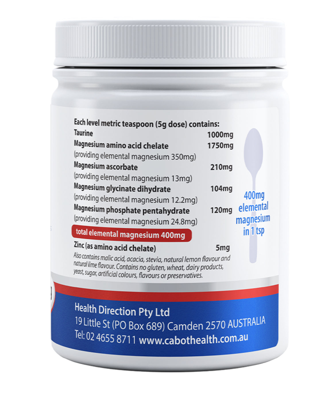 - Each teaspoon provides a massive 400mg of elemental magnesium. This provides you with the daily therapeutic dose of magnesium in only one teaspoon.