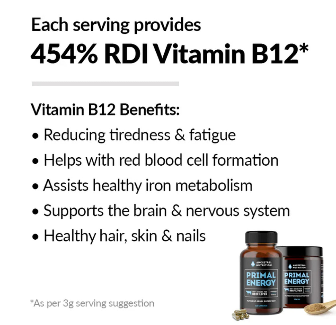 - A natural source of vitamin B12 to support tiredness & fatigue