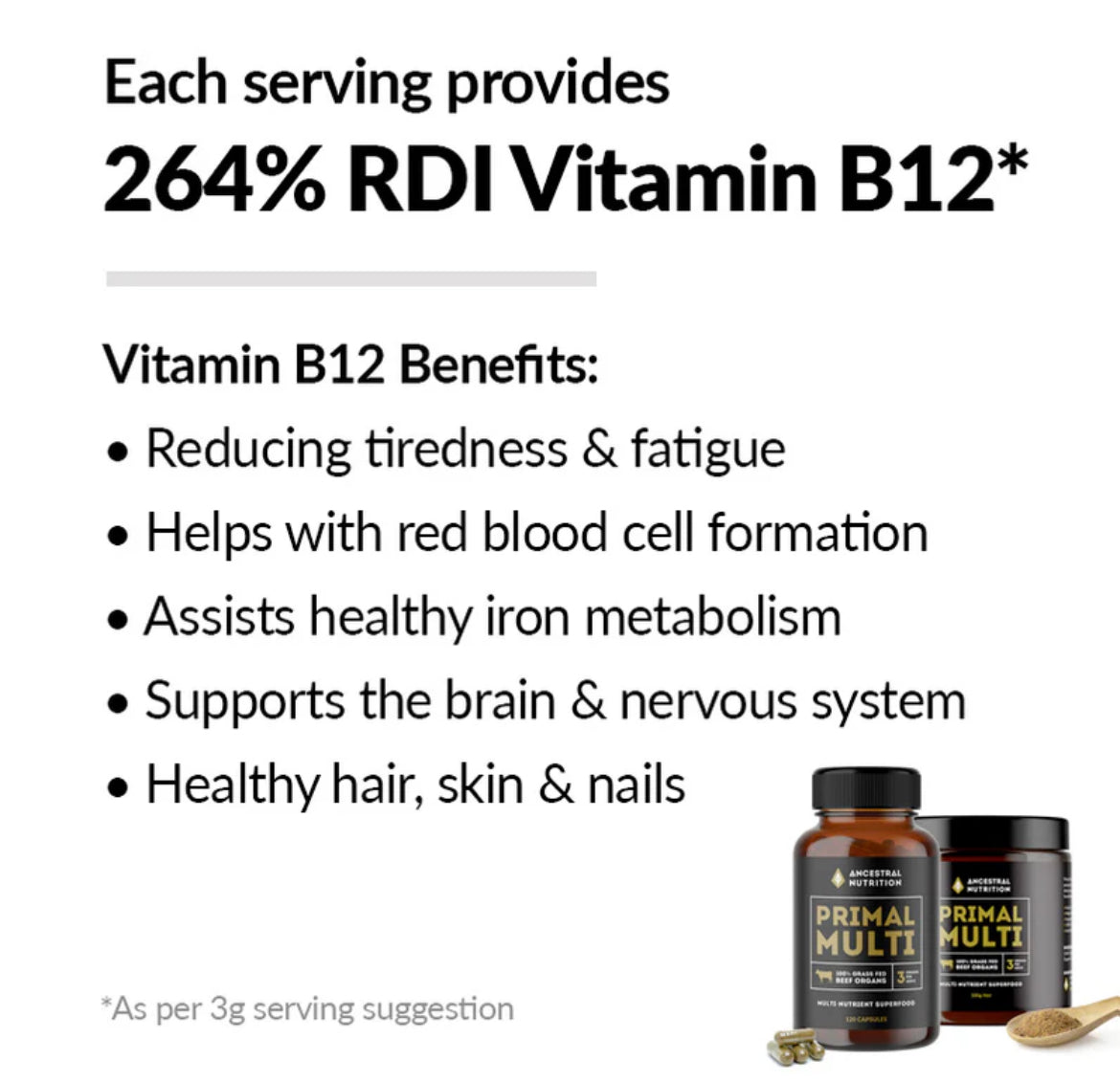 - Can help ease everyday tiredness when dietary intake is low