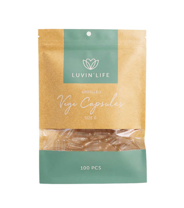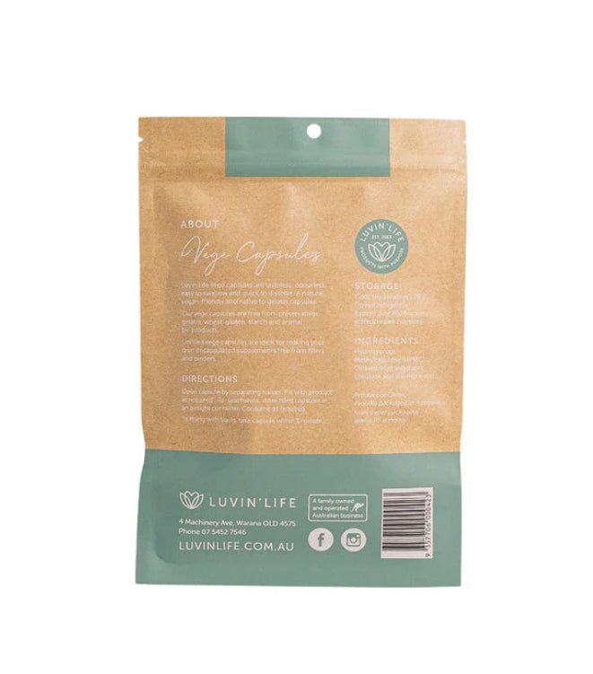 Luvin Life Vege Capsules are tasteless, odourless, easy to swallow and quick to dissolve. A natural vegan-friendly alternative to gelatin capsules.