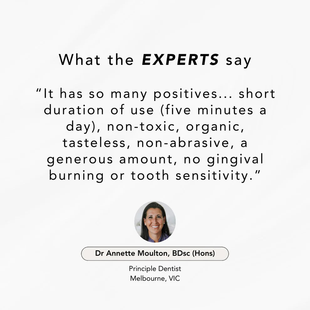 • Peroxide-free - Avoids the harmful effects of peroxide-based whiteners, which can cause tooth pain and damage.