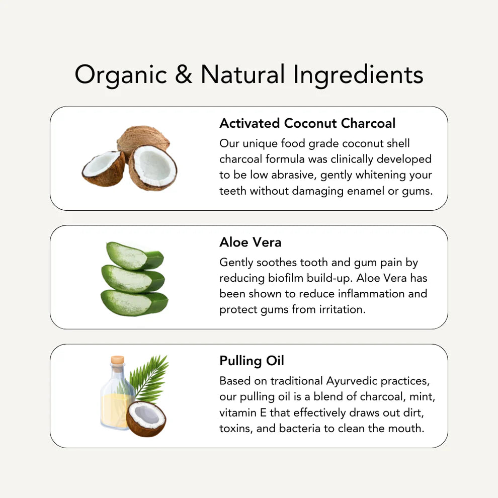 • Clinically proven formula - Made from coconut-based charcoal, it safely whitens without damaging your teeth or gums, outperforming traditional whitening products.