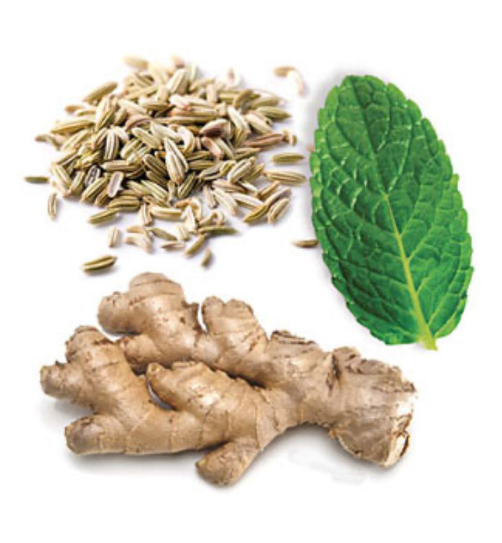 Each Capsule Contains: Carum carvi seed Oil essential 18 mg Illicium verum fruit Oil essential 2.4 mg Mentha X piperita herb Oil essential 40.8 mg Zingiber officinale root Oil essential 22.8 mg