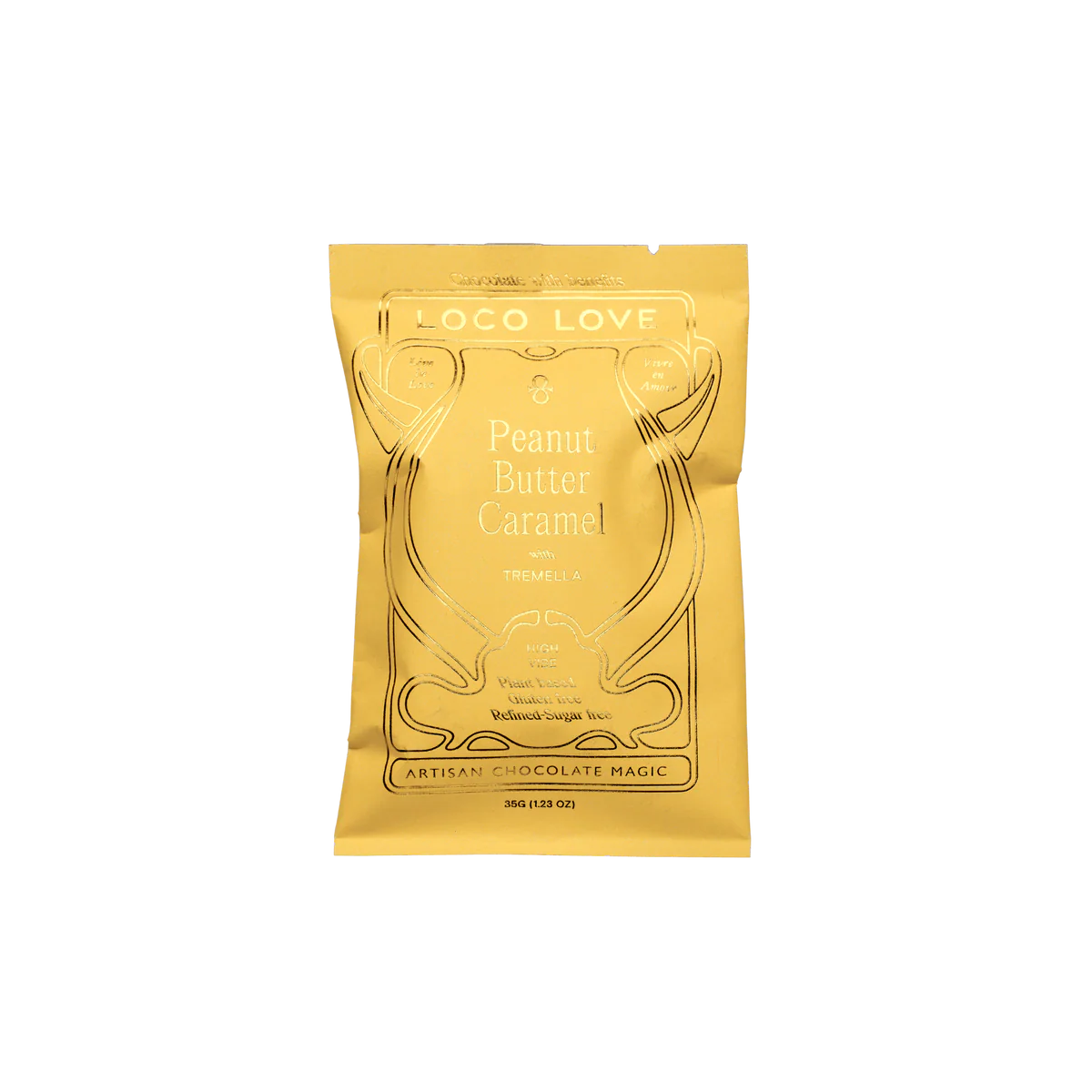 An irresistible blend of vegan caramel and toasted peanut, spiked with beauty food Tremella mushroom. Infused with our own handmade peanut butter; it’s smooth and crunchy, not overly sweet, slightly salty. We couldn’t find a peanut butter on the market that didn’t have nasty additives like vegetable oil so we made our own. We’re resourceful like that.