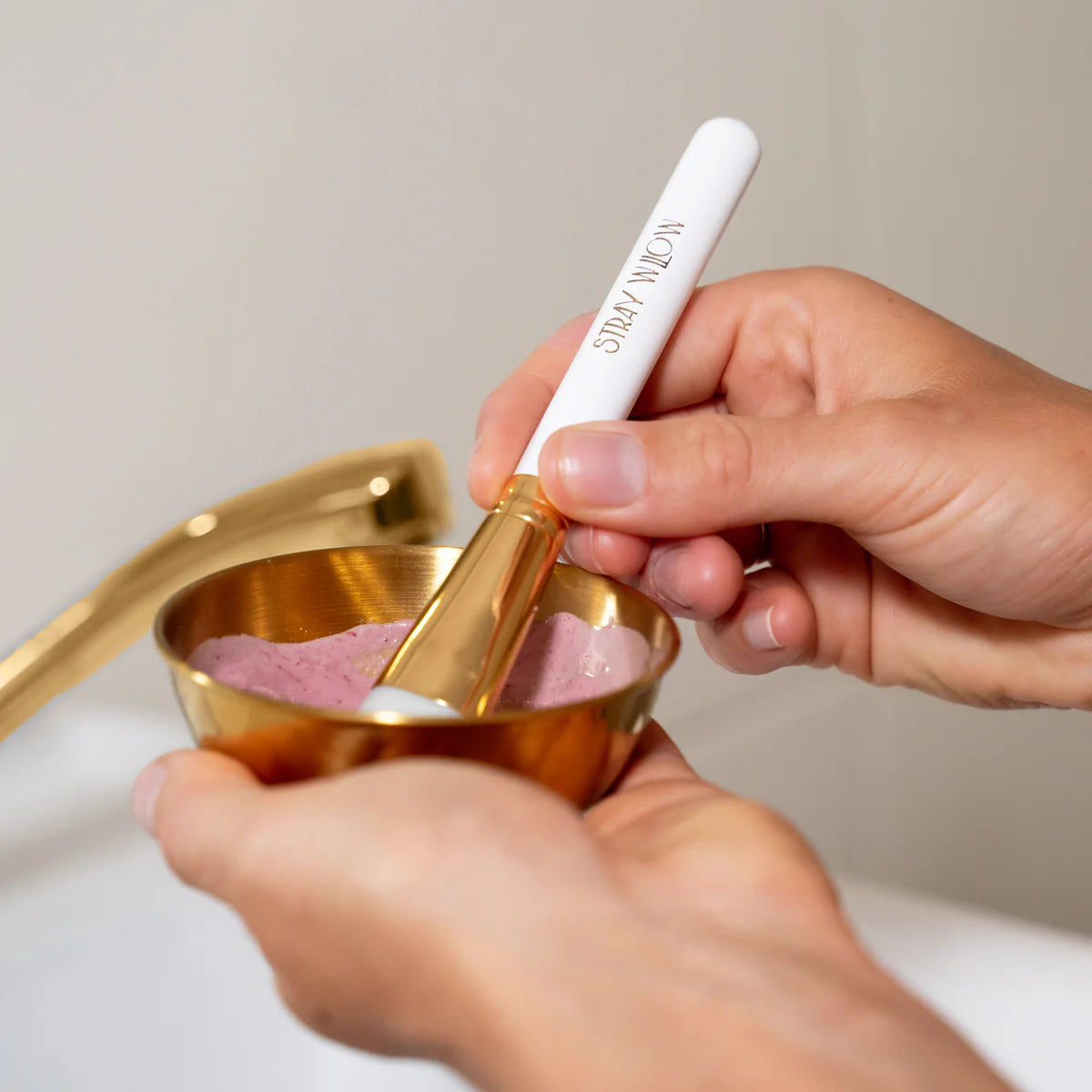 Scoop ½ tablespoon of the dry mask powder into a small bowl. Slowly add a few drops of water, mixing until it forms a smooth, creamy paste. Apply evenly to face and neck, avoiding the eye area. Leave on for 10 minutes. With wet hands, gently massage the mask to create a soft lather. Rinse off with warm water and enjoy your refreshed, glowing skin.